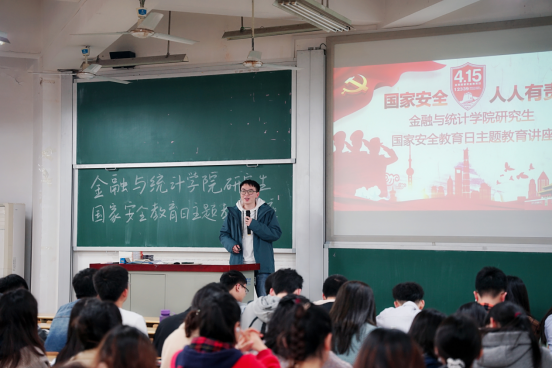 4月18日晚,ok1133诸侯快讯在财院校区二教501教室举办研究生国家安全教育日主题教育讲座。本次活动由研究生辅导员周斌主讲,学院三百余名研究生参加。
