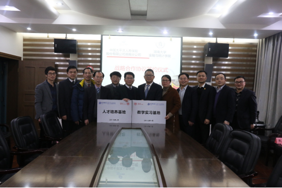 聂国军与杨林代表院企双方签署战略合作协议。签约仪式结束后,与会双方领导合影留念。