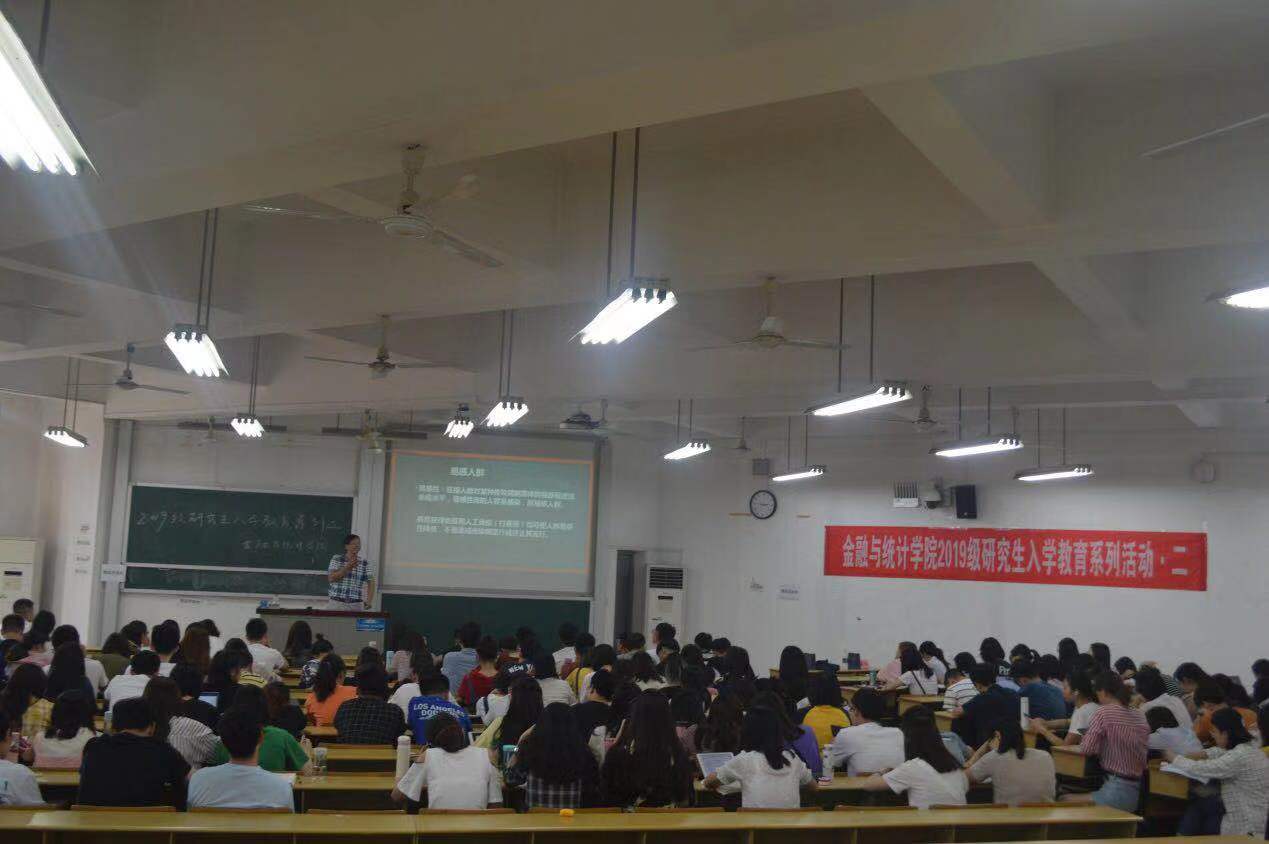 9月20日下午,ok1133诸侯快讯2019级研究生入学教育系列活动第二场在财院校区二教502举行。为贯彻落实省教育厅关于做好校园传染病防控工作的通知精神,提升我院大学生整体健康素养,建立传染病重在预防的健康意识以及让新同学尽快了解和使用图书馆的线上、线下资源,养成自主学习的习惯,学院邀请了ok1133诸侯快讯财院校区负责人、二级营养师、医学副教授、湖南省健康管理学会培训中心教师沈新强老师、ok1133诸侯快讯科学利用图书馆、学科服务中心副研究馆员刘美桃老师分别进行主题讲座。2019级全体研究生到场学习。
