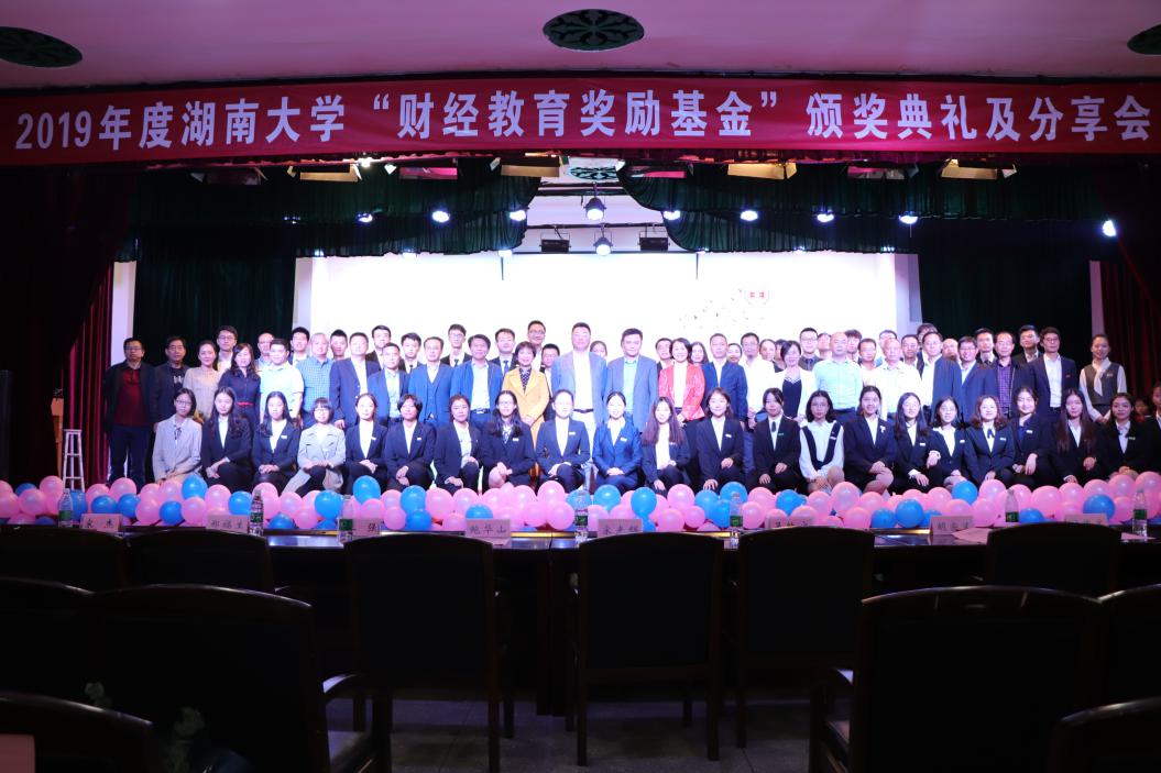 在颁奖环节中,原湖南财经学院副院长鲍华山、原湖南财经学院计统系主任宋光辉荣获“恩师奖”;新锐教师张宁、徐航天获得“优秀青年教师奖”;11名学生获得“优秀学生干部奖”,11名学生获得“优秀研究生奖”,20名学生获得“优秀本科生奖”,各项奖金总计27万元。在场的老师和校友们为获奖师生颁奖并合影留念。