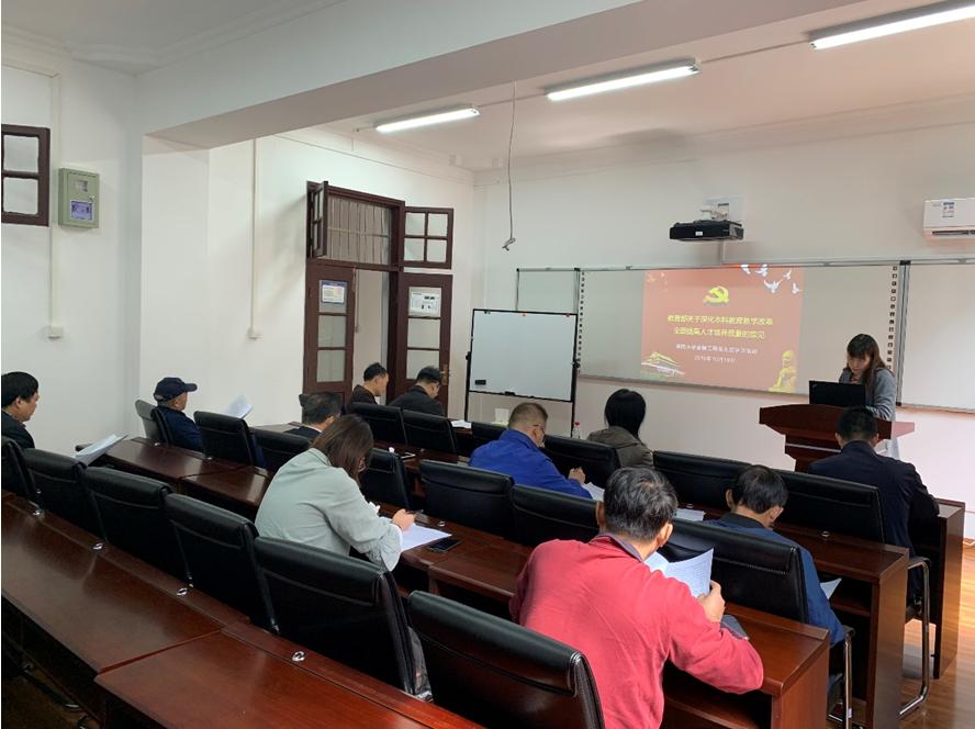 系副主任宋丹丹老师从严格教育教学管理、深化教育教学制度改革、引导教师潜心育人、加强组织保障四各方面,传达了《教育部关于深化本科教育教学改革全面提高人才培养质量的意见》的精神,重点针对建设课程思政示范课程、提高学生创新和实践能力、强化课程过程性考核等方面进行了分析和讲解。