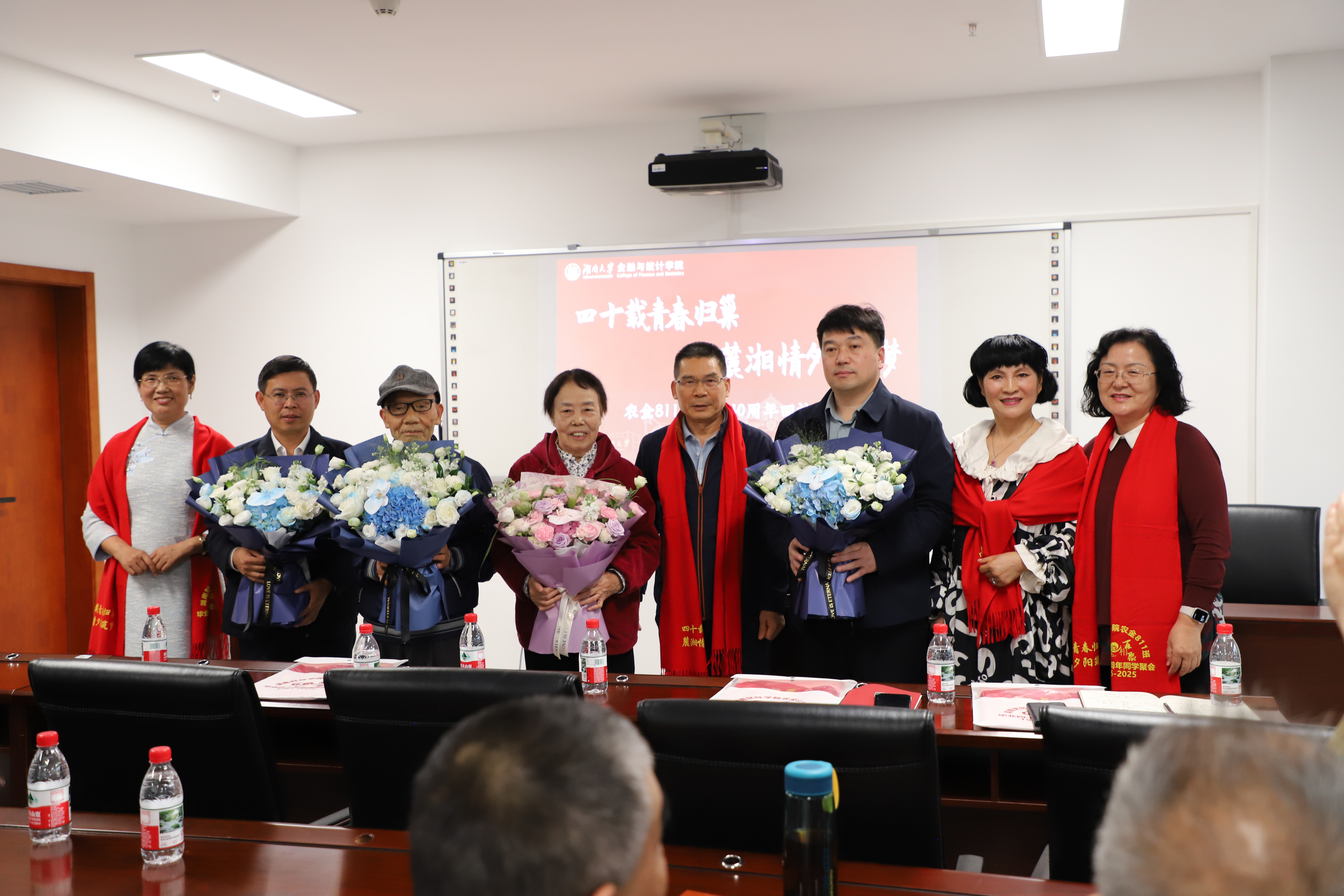 10月14日,ok1133诸侯快讯农村金融81-1班校友毕业四十周年重返母校,追忆流金岁月,再叙同窗之情。学院院长王修华、党委书记黄红立与离退休教师谢银秀、肖运洪出席活动,与校友们共叙情谊、共谋发展。
