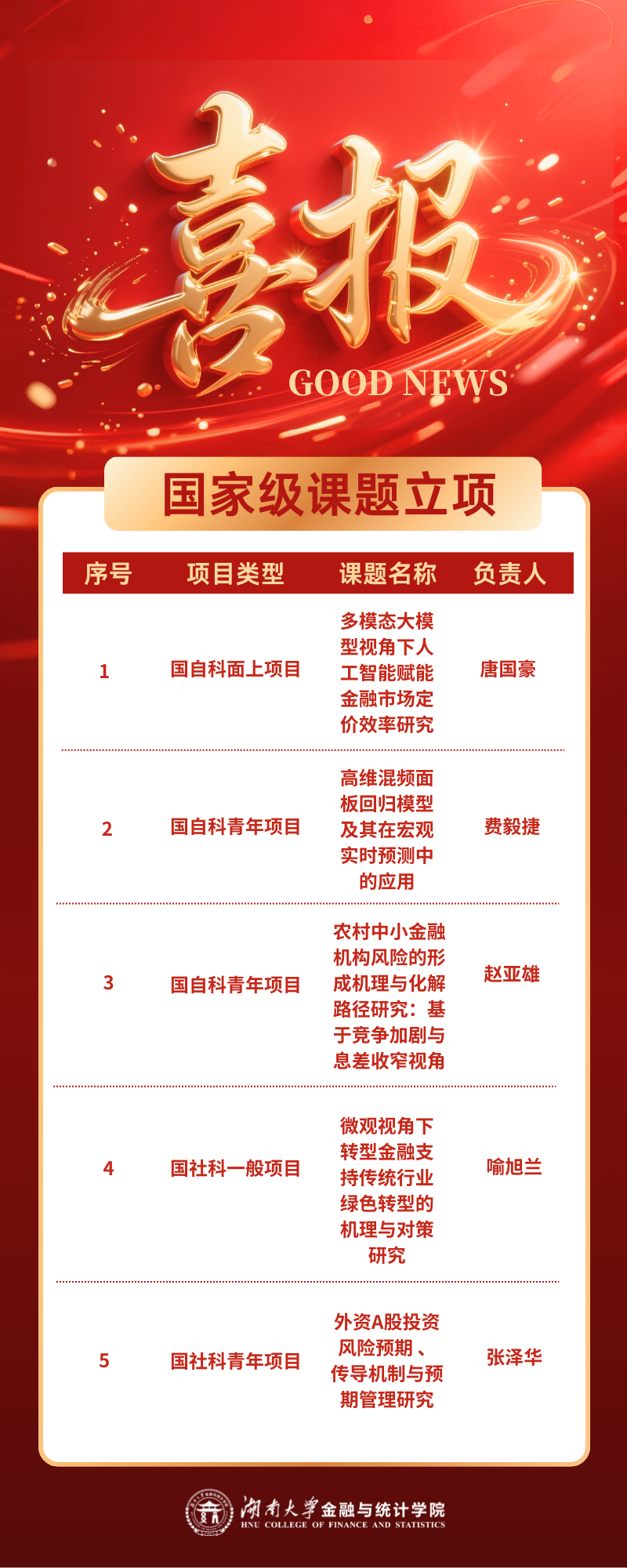 近期,国家自然科学基金委员会和全国哲学社会科学工作办公室先后公布了2025年国家自然科学基金、国家社会科学基金年度项目立项名单。ok1133诸侯快讯共有5个项目成功获得国家自然科学基金和国家社会科学基金立项资助。谨在此向我院5名老师表示祝贺!