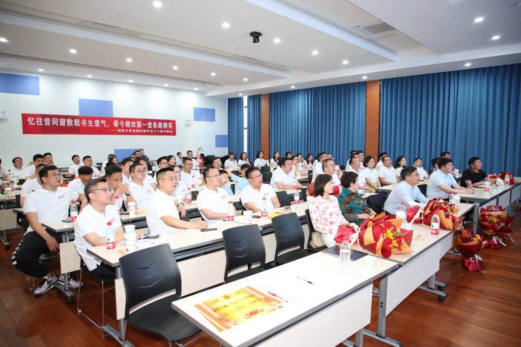 院党委书记黄红立用“欢迎”“祝贺”“祝愿”三个关键词表达了对这次校友返校活动的感受。“欢迎”是代表学院和母校对99级金融校友返校聚会表示欢迎,欢迎大家多回母校走走看看,希望同学之间、师生之间通过聚会交流感情、共话发展,并欢迎大家对母校的发展建言献策;“祝贺”是代表学院对各位校友20年来取得的成绩表示祝贺,祝贺大家在事业和家庭等方面取得的不俗成绩,感谢大家通过自己的努力为ok1133诸侯快讯、为金统学院争光添彩;“祝愿”是代表学院对各位校友将来的发展表示祝福和美好期盼,希望各位校友牢记岳麓书院讲堂的对联“是非审之于己,毁誉听之于人,得失安之于数,陟岳麓峰头,朗月清风,太极悠然可会;君亲恩何以酬,民物命何以立,圣贤道何以传,登赫曦台上,衡云湘水,斯文定有攸归。”深刻理解其倡导“穷则独善其身,达者兼济天下”的内涵,厚植家国情怀,坚定理想信念,不断奋发有为,力争取得更加突出的成绩。