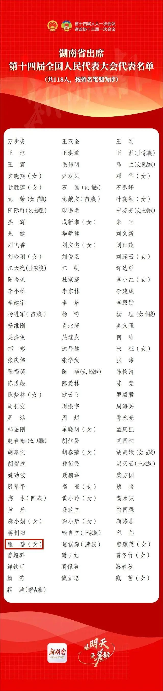 1月18日,根据媒体报道,湖南财信金控集团党委书记、董事长,我院08级金融学专业(硕士)校友程蓓当选第十四届全国人大代表。